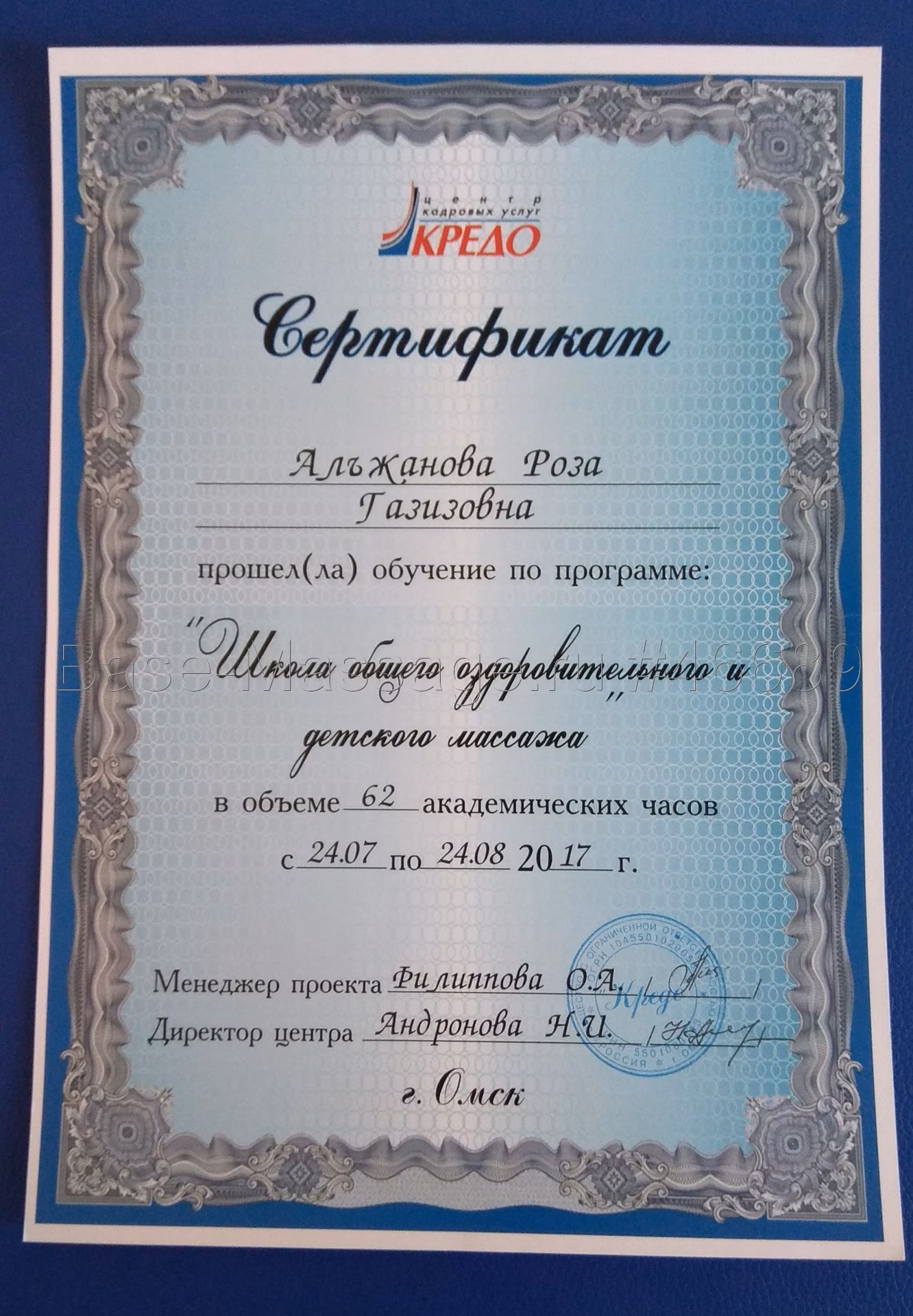 Опыт работы: 4 года. Сертификаты.